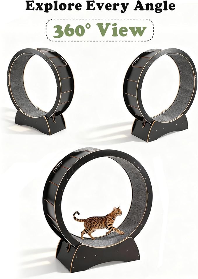 - π§© SPACE-SAVING & STYLISH DESIGN The modern black finish seamlessly blends with contemporary home decor. With a compact footprint (43.3"L x 14.96"W), it fits perfectly in tight spaces while providing ample internal running space (39.4" diameter) for most cat breeds