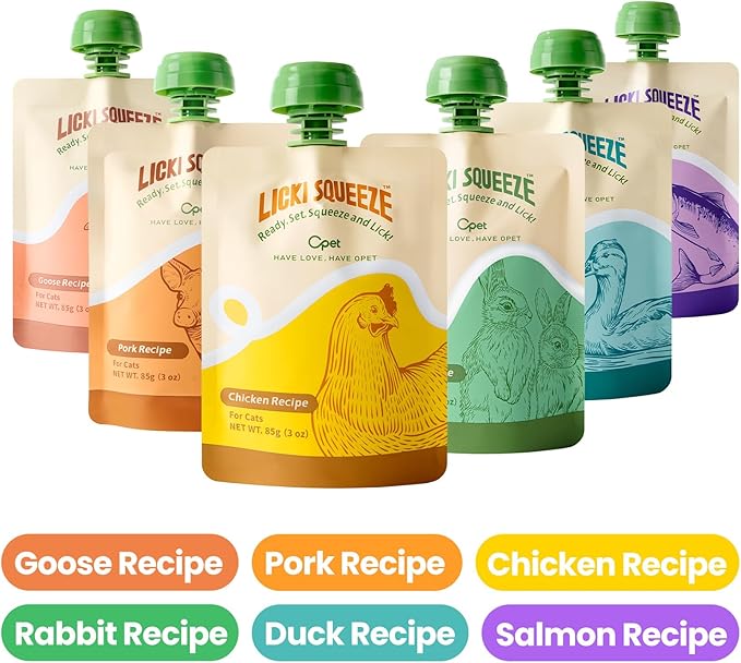 OPET Pate Wet Cat Food Lickable Bisque Wet Cat Treats Cat Food Topper,Free Grain, No by-Product,No Fillers, Thick & Squeezable, 3oz Pouch (Pack of 6)