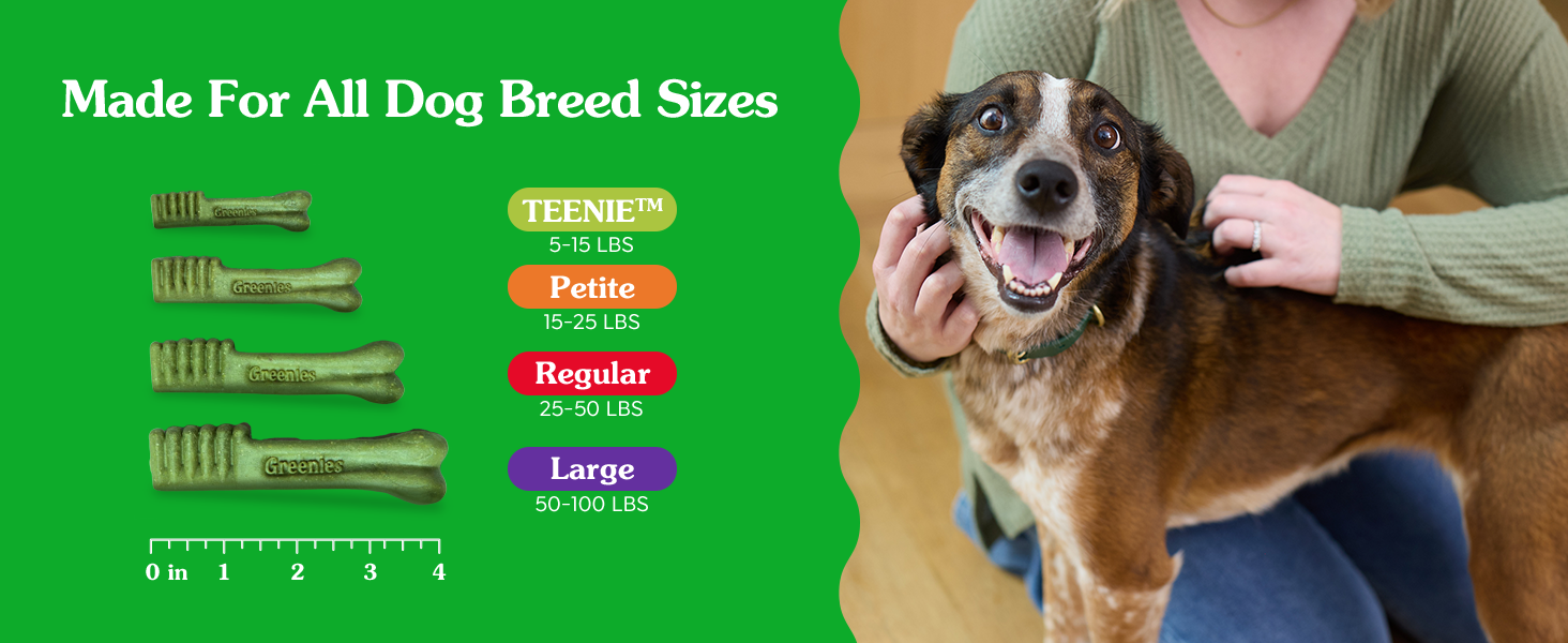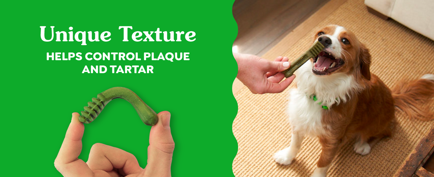 One Greenies Original Dental Treat a day is all it takes for clean teeth, fresh breath, and a happy dog. Your dog can't wait to sink their teeth into these delicious, original-flavor dental dog chews because they feature a delightfully chewy texture that fights plaque and tartar. Irresistibly tasty and incredibly powerful, Greenies Treats for Dogs are vet recommended for at-home dental care. Best of all, these natural dog treats are the perfect breath freshener to help fight bag dog breath and are made with highly soluble ingredients that are safe and easy to digest. Give your canine the mouth-wowing treat that helps promote their oral hygiene and overall health with Greenies Dog Treats. Great for toy breeds and dogs between 5 and 15 pounds. Natural Dog Treats Plus Vitamins, Minerals and Other Nutrients.