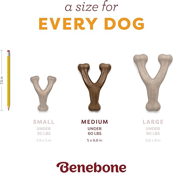 Benebone Wishbone Durable Dog Chew Toy for Aggressive Chewers, Real Bacon, Made in USA, Medium