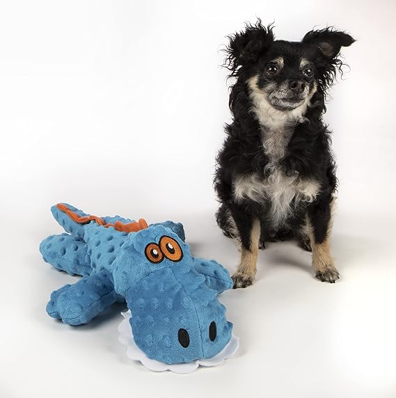 goDog Gators Squeaker Plush Dog Toys have a fun, textured, bubble plush body that is also under-stuffed for maximum floppy fun. goDog plush dog toys are designed to be stronger and last longer. Made more durable with Chew Guard Technology, a special manufacturing process that adds a super tough and durable lining to soft plush toys. goDog gives pet parents the best of all worlds: innovative products, stylish designs, and exceptional value with a variety of toys and beds to meet a dog's needs for play, retreat, rest, and fun! goDog products are designed to meet child safety standards. DISCLAIMER: Our toys are tougher than standard plush toys, but NOT indestructible; some dogs can destroy Chew Guard toys depending on their play and chew patterns.