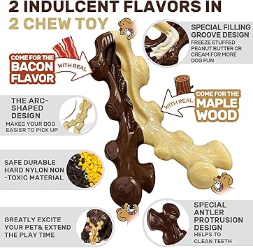- Truly tempting taste-this dog toy has a unique smoking process,infused with 100% authentic taste;brown toys exude the aroma of crispy bacon,while beige toys have an elegant woody scent. Trust us,these enticing scents will tempt your dog to chew.Charming and chewy,your furry companion will never be able to resist.Not only does it reduce anxiety and prevent destructive chewing,but it also teaches your precious dog healthy chewing habits-perfect for training,teething,weight control and much more