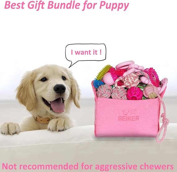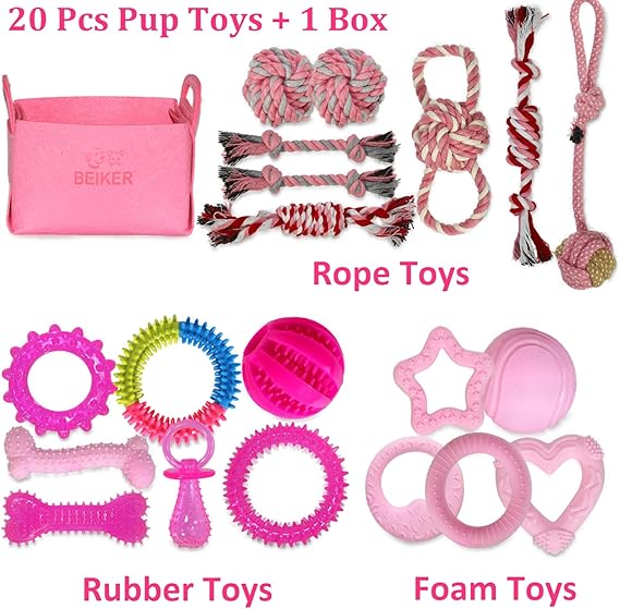 - Delightful Toy Selection: Our pack consists of 20 adorable and entertaining toys tailored for puppies and small dogs. Featuring a wide variety of choices like rope toys, a treat-filled ball, rubber toothbrush bone toy, a tug of war toy, a pacifier toy, and teething rings, your furry companion will always stay entertained.