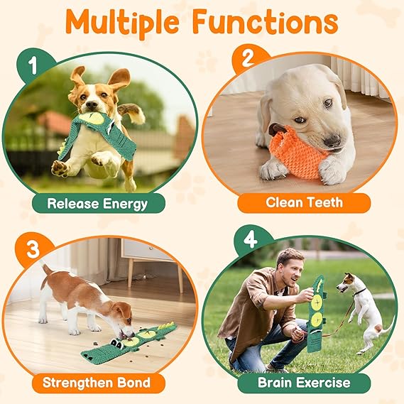 - 2-In-1 Mental Enrichment Treat Pockets + Long Tug Rope Design: Hide Kibble For Sniffing Games Or Roll With Treats Inside To Stimulate Natural Foraging Instincts And Reduce Anxiety!