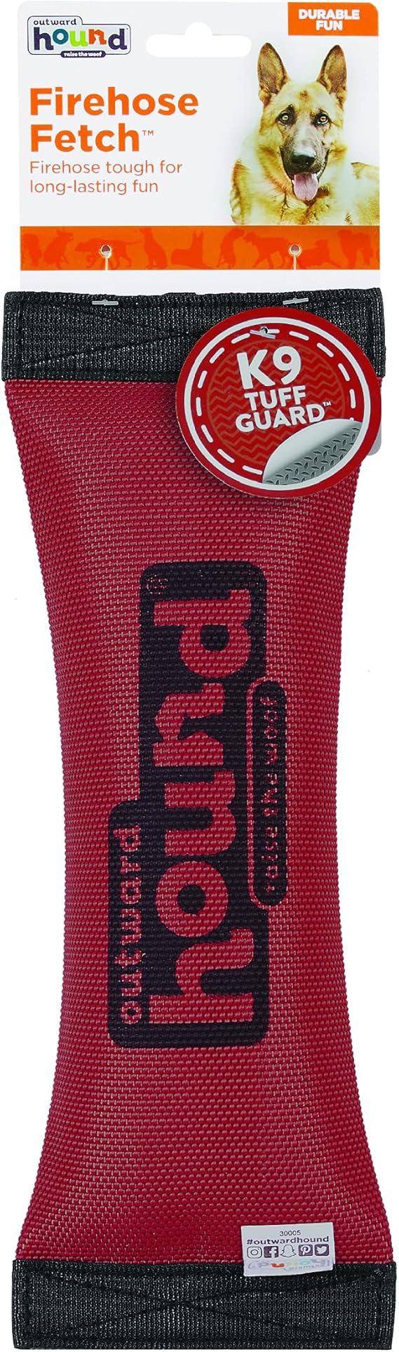 The Outward Hound Firehose Fetch dog toy is a new kind of plush dog toy. Made with double-stitched seams and real firehose material, these dog toys and puppy toys are crafted to withstand plenty of rough play. Perfect for fetch, tug or toss games, these durable plush toys feature a squeaker that will keep your pup engaged by activating their natural hunting instincts! The Firehose Fetch toy also floats on water, doubling as the perfect poolside option on hotter days. The Firehose Fetch dog toy is intended for supervised play and not to be used as a chew toy. Toy contains polyfill. SAFETY & CARE: When choosing a toy, make sure to choose an appropriate size toy for your dog. No toy is indestructible. ALWAYS supervise your dog when using a toy of any kind. Inspect toys regularly for damage and remove and replace if broken, or if parts become separated, as serious injury may result. Intended for dogs only. Keep out of reach of children.
