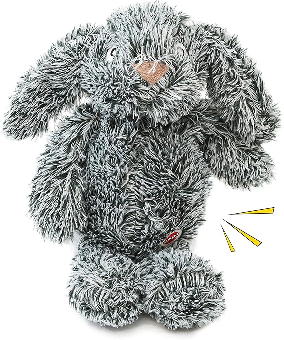 The Cuddle Bunny dog toy are shaggy plush and super soft. The toy has floppy ears, legs and arms and includes a honking squeaker.