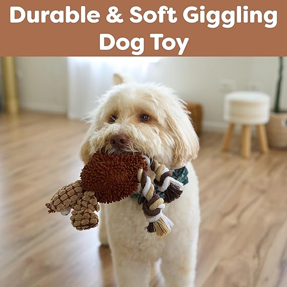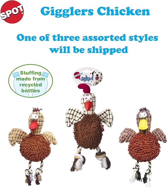 SPOT Gigglers Chicken Dog Toy with Giggle Sound, Textured Plush Tug Toy with Rope Legs, 12" for Small and Medium Dog Breeds