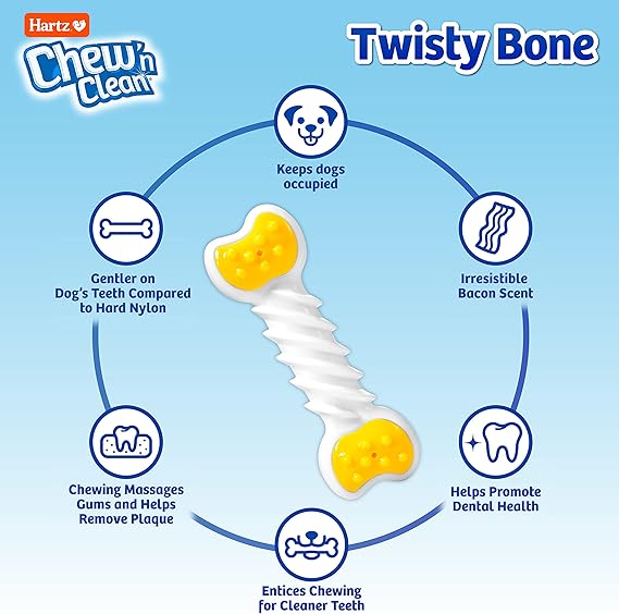 Hartz Chew ‘n Clean Twisty Bone Dog Chew Toy, Bacon Scented Chew Toy for Moderate Chewers, Small/Medium, Color Varies