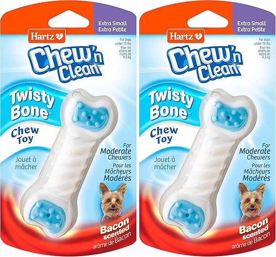 Hartz Chew ‘n Clean Twisty Bone Dog Chew Toy, Bacon Scented for Moderate Chewers, Extra Small