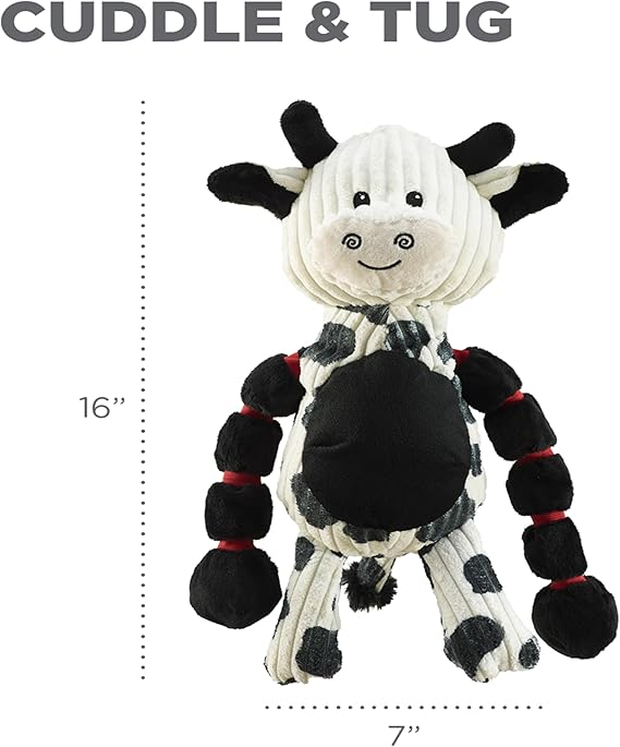Outward Hound Thunda Tugga Cow Plush & Squeaky Dog Tug Toy