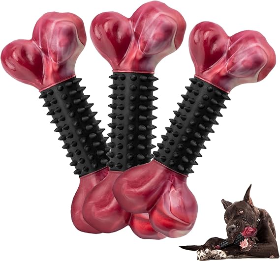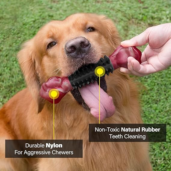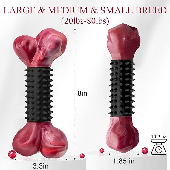 Apasiri Tough Dog Toys for Aggressive Chewers Beef Flavor: 8" Dog Chew Bone for Large Breed, Nylon & Rubber Chew Toy for Medium Large Dogs