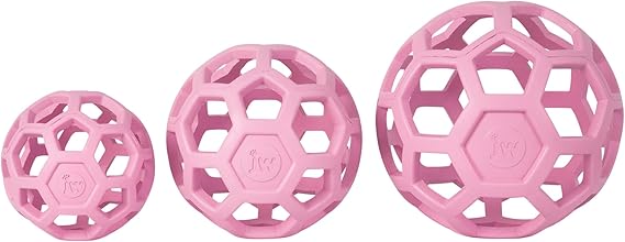 JW Pet HOL-ee Roller™, Dog Toy Puzzle Ball, Natural Rubber, Large (5.5” Inch Diameter), Pink