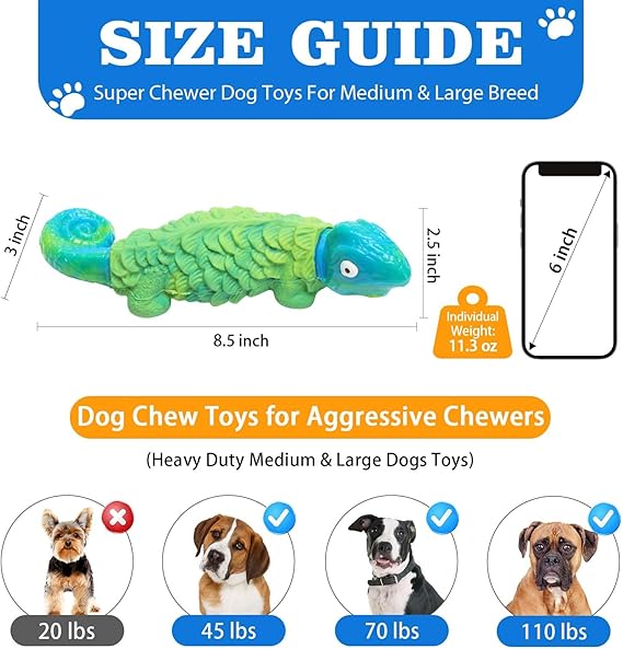 Durable Dog Toys for Aggressive Chewers, Indestructible Dog Toys for Large Dogs, Tough Chew Toys for Small Medium Large Breed to Keep Them Busy (Strong Beef Flavored Lizard)
