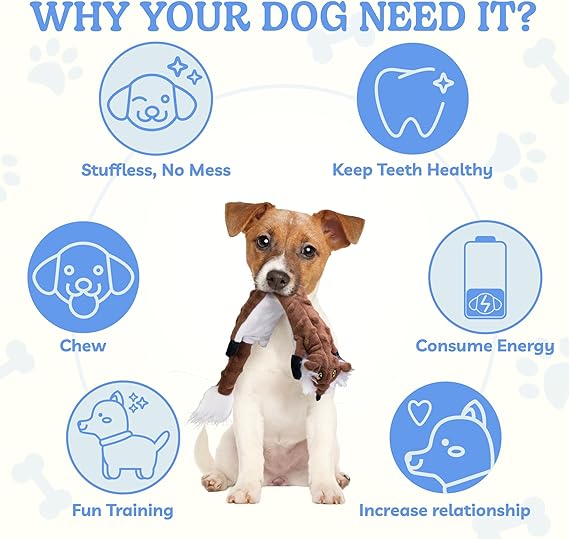 - Crinkle Squeaky Dog Toys, Attract Attention: There are 2 different sounds inside the dog squeak toys, squeaker and crinkle paper, drawing puppies' curiosity. Interesting sounds can effectively provide IQ stimulation, which will help dogs play actively. Consume the dog's abundant physical strength, thus reducing their damage to furniture