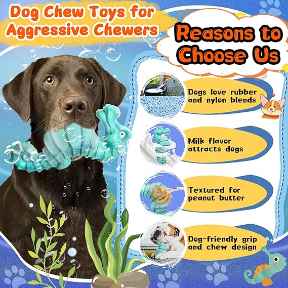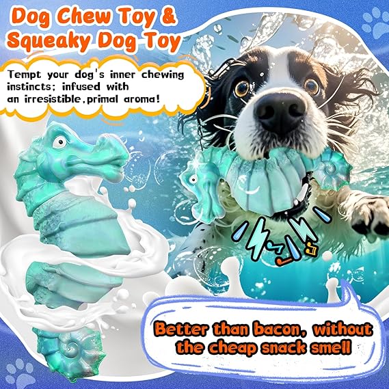 - 【Squeaky Dog Chew Toys】: The dog chew toys feature a cartoon seahorse design and a built-in fun squeaker. When your dogs presses or chews the dog toy, the tough dog toys will make fun sounds to attract the dog's attention and interest, bringing more fun