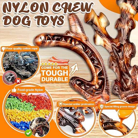 - DURABLE DOG TOYS: “lol, destroyed in 1 day”! If you're a super pet parent, you must well aware of the wide range of chew toys available on the market for our furry friends. However, these toys are too fragile for those aggressive chewers out there! We understand your frustration. That's why OSORD hard dog chew toys are made from durable food-grade nylon that is virtually indestructible, which for super chewers will not break apart and long lasting