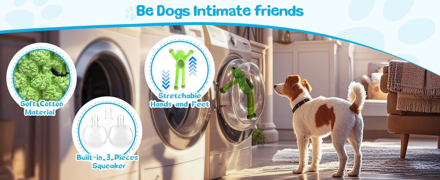 - 【Interactive Dog Toys】Unique frog design and bright colors can draw your dogs attention to chew for hours,which is perfect for small,medium and large dogs, allows the pulling of arms and limbs back and forth through the toy body and has a maximum stretch length of 29 inches