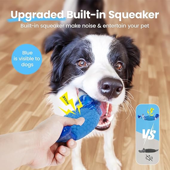 - Squeaky Dog Toys for Aggressive Chewers: The upgraded tough dog toys built-in squeaker stimulate the passion of your pets by making the sound when they bite this large dog toys chewers. Specially designed in green-color that dogs can see giving added stimulation. This interactive feature makes our dog chew toys great dog toys to keep them busy, reduce boredom, and develop good chewing habits