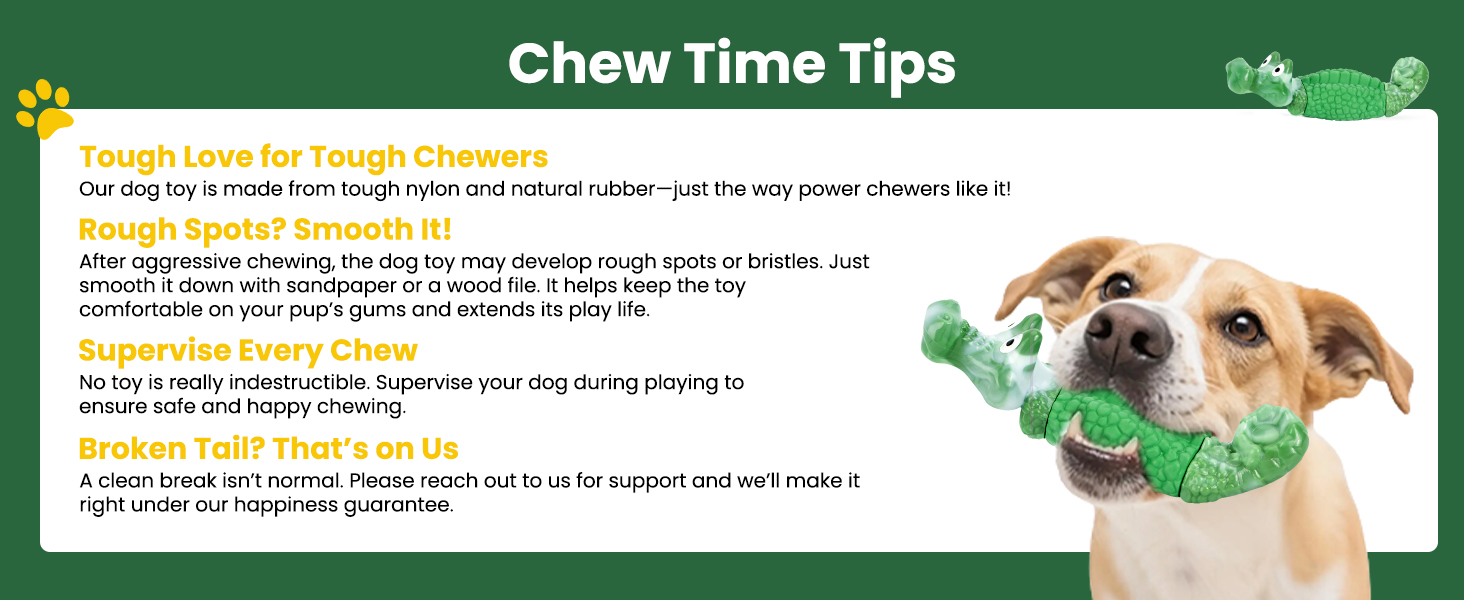 - Happiness Guarantee: We design mostly indestructible dog toys for dogs and provide satisfactory service for you. Because we know dog behavior can be unpredictable, if you or your aggressive chewer are not completely satisfied for any reason, please reach out to us. TIPS: 1. Easy to clean with water or dishwasher. 2. Remove the toy if damaged or gnarly. 3. Always supervise your pet during playing