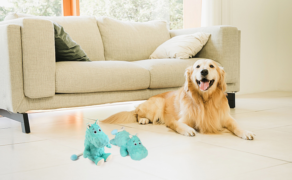 DODODOLA Cute Stuffed Hippo Dog Toys Squeaky Dog Toys with Crinkle Paper Dog Plush Toys for Large Breed Dog Chew Toys for Small, Medium, Large Dogs