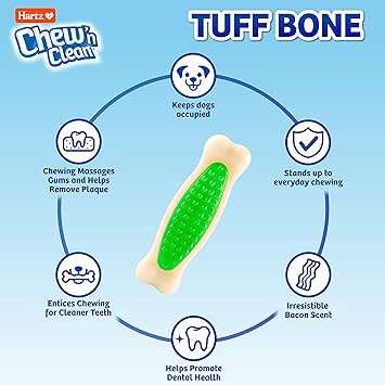 Hartz Chew 'n Clean Tuff Bone Bacon Scented Dental Dog Chew Toy - Medium