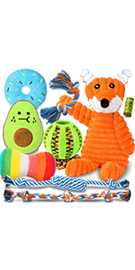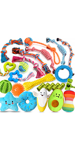 - Reliable Materials:Tough rope toy in natural, washable cotton, resistant to biting and gentle on teeth. Squeaky toys in nature rubber,gentle but tough.Beef-flavored nylon bone chew toy. Safe toys ensure your dog’s health with secure play and chewing