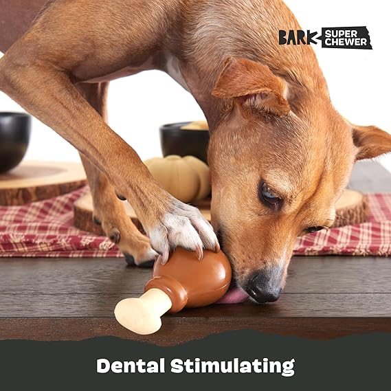 - Built to Last: This Turkey Day Drumstick is sure to satisfy your dog’s appetite to chew, chomp, and gnaw. Made with durable natural rubber and a tough nylon core, your dog will be chewing long after dessert is served.