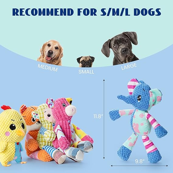 - Built-in Squeakers and Crinkle Paper: Each plush dog toy is equipped with built-in squeakers and crinkle paper, making funny sounds when pets play with them, attracting their attention and enhancing their interest and interactivity.