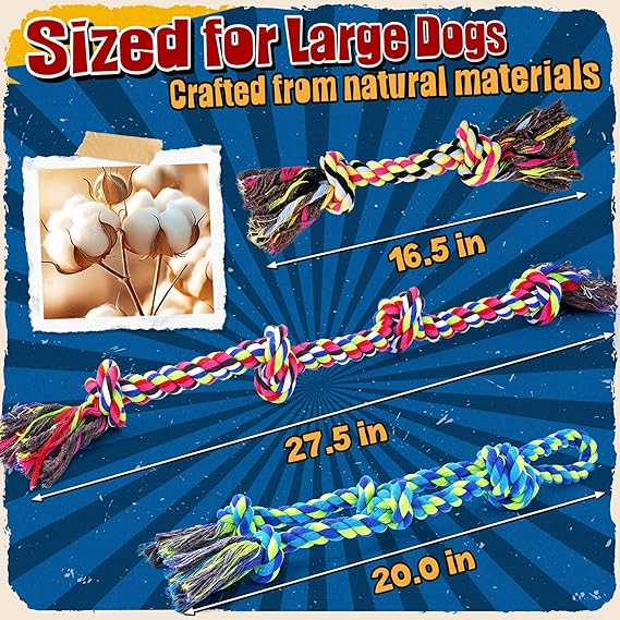 - Value-Packed Rope Toys Set: Includes 3 durable rope toys for tug-of-war, chewing, and dental cleaning, with 2 dog bags for convenient cleanup. Designed for large dogs and aggressive chewers, it combines fun and practicality to keep your pet entertained