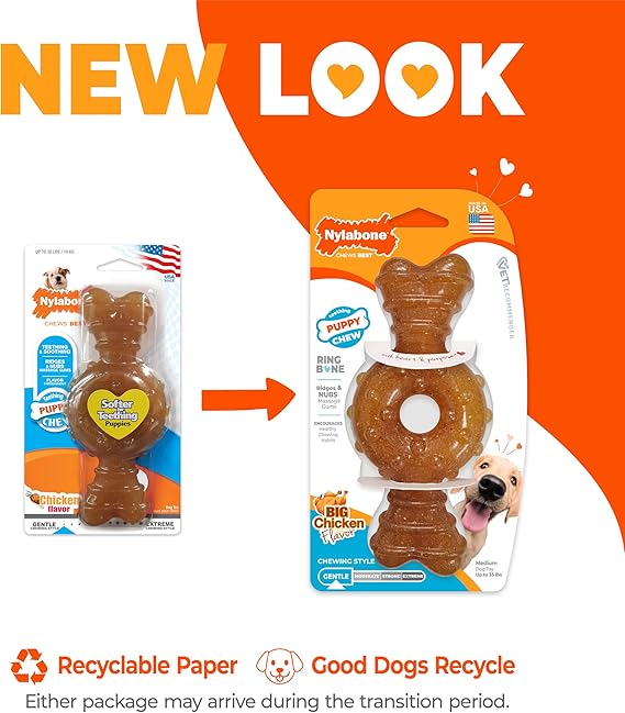 Nylabone Ring Bone Chew Toy for Puppies, Puppy Teething Toys, Puppy Enrichment Toys, Chicken Flavor, X-Small Dogs - Up to 15 lbs, 1 Count