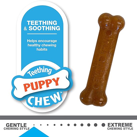 Puppies use their mouths to explore their world and especially to relieve teething pain! That's why Nylabone Puppy Chew toys come in all different shapes, flavors, and textures to keep your new best friend comforted and entertained. With positive reinforcement, your pup will learn that chewing on our puppy toys is not only encouraged, but a fun activity as they grow up!