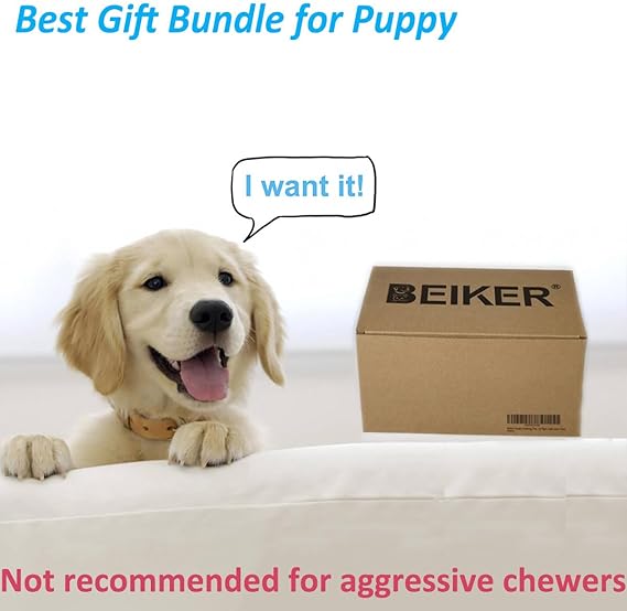 - HEALTHY PUPPY TEETHING TOYS: We pay special attention to the dogs' health and safety. All the toys are made of natural rubber and cotton. Dogs have a strong desire to chew everything in the house when teething. So by chewing our bones toy, pacifiers, and rubber teething rings are all great ways to relieve your dog's itchy teeth while your dog is teething.
