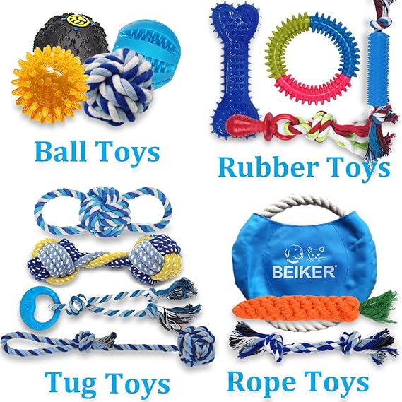 Beiker Dog Teething Chew Toys - 15 Pack Small Medium Breed Puppy Toy, Variety Dogs Rope Chew Toys Bundle for Boredom, Pet Interactive Squeaky Treat Dispensing Ball for Puppies