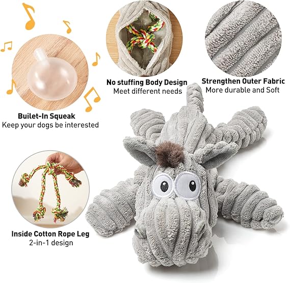 Dog Toy, Large Dog Squeaky Toys, Stuffed Animal Dog Plush Toy for Puppy, Small, Middle, Large Dogs (Donkey(Grey))