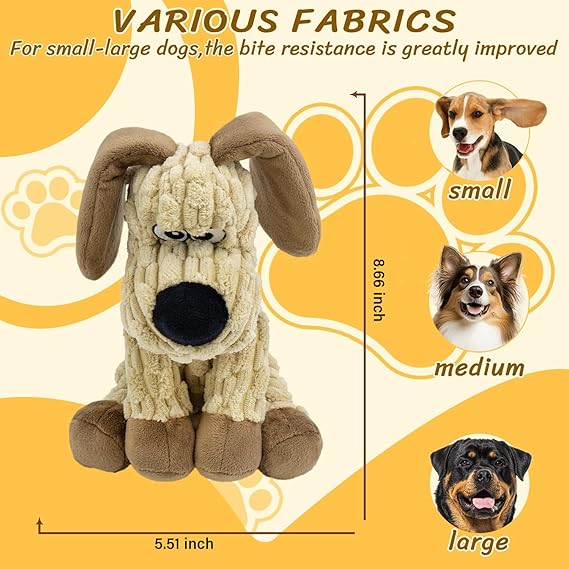 Squeaky Stuffed Dog Toys, Chew Toy for Large Medium Small Breeds, Plush Dog Toys to Keep Them Busy, Puppy Teething Dog Toy, Crinkle Dog Toy (Khaki Dog)