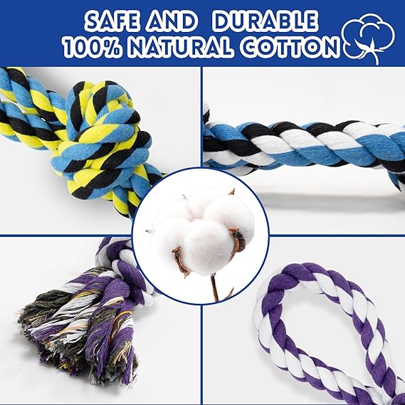 - Safe and Durable: Dog chew toy set is made of high-quality 100% natural cotton, safe and durable. Tightly woven, wear-resistant, and sturdy construction allowing the dog toy to withstand rough play and aggressive chewing