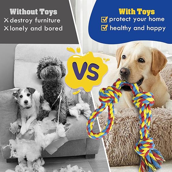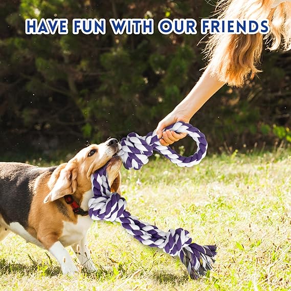 - Perfect Dog Gift: Colorful design is perfect as a birthday or holiday gift for your dogs. It's more than just entertainment, it's also a means of exercise that helps keep our canine companions healthy. Rope dog toys are consumable and not truly indestructible. If your dog is a very aggressive chewer, we recommend play with supervision