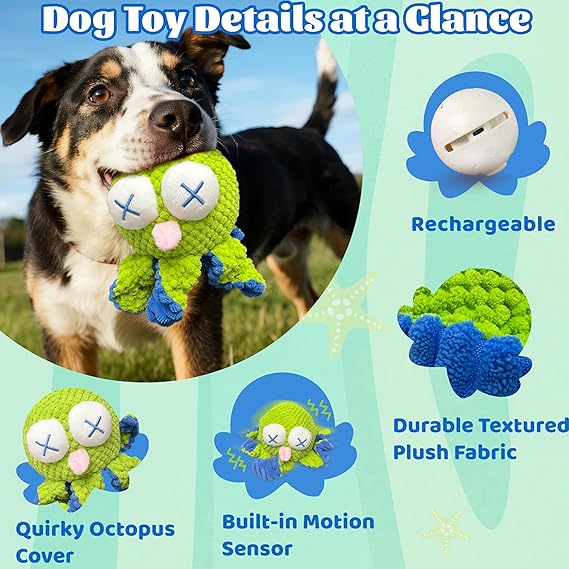 Interactive Octopus Dog Toys - Rechargeable Dog Squeaky Toy with Bouncing Ball, Music, Recording & Silent Modes - Moving Toys to Keep Dogs Busy for Small, Medium & Large Breeds
