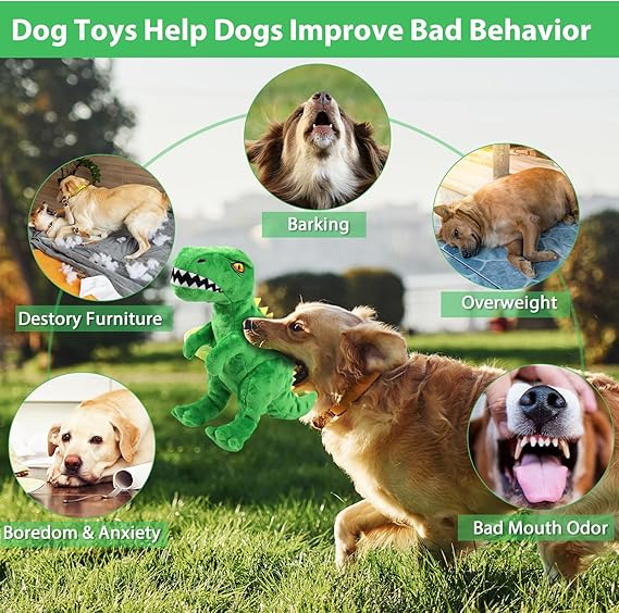 Dog Toys Cute Dinosaur Plush Toy for Large Dogs - Squeaky Interactive Stuffed Dog Chew Toy for Puppies, Pet Toys for Small to Large Breeds