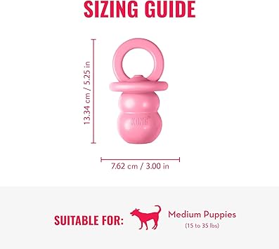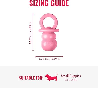 - Puppy Toy with Pacifier Design: This small dog toy is crafted in a distinctive pacifier shape using a soft, natural rubber formula designed to soothe teething puppies