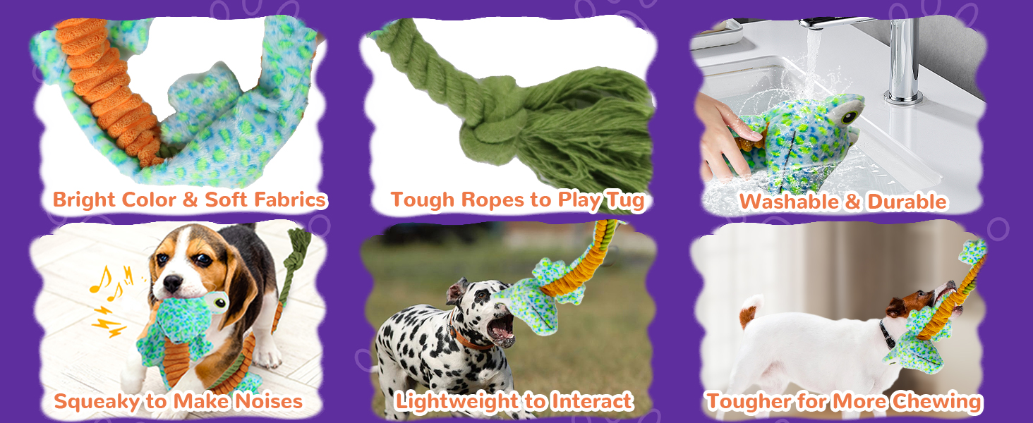- 【Perfect Dog Toys Gifts】This plush dog chew toy that brings joy to dogs is very portable easy to clean and can be washed in the washing machine or by hand. Whether it's for birthdays, Christmas, Thanksgiving, Easter and other special holidays, this tough dog toy is the go-to gift for dog owners and their furry friends!