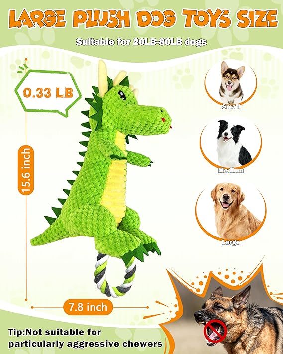 - 【Interactive Dog Toys to Keep Them Busy】Large dog plush toy is 15.6 inches in length and 7.8 inches wide in the heasd. The combination of plush material and rope makes this toy versatile - perfect for solo play or interactive sessions with their human companions it is a good traing toy. for small, medium and large dogs