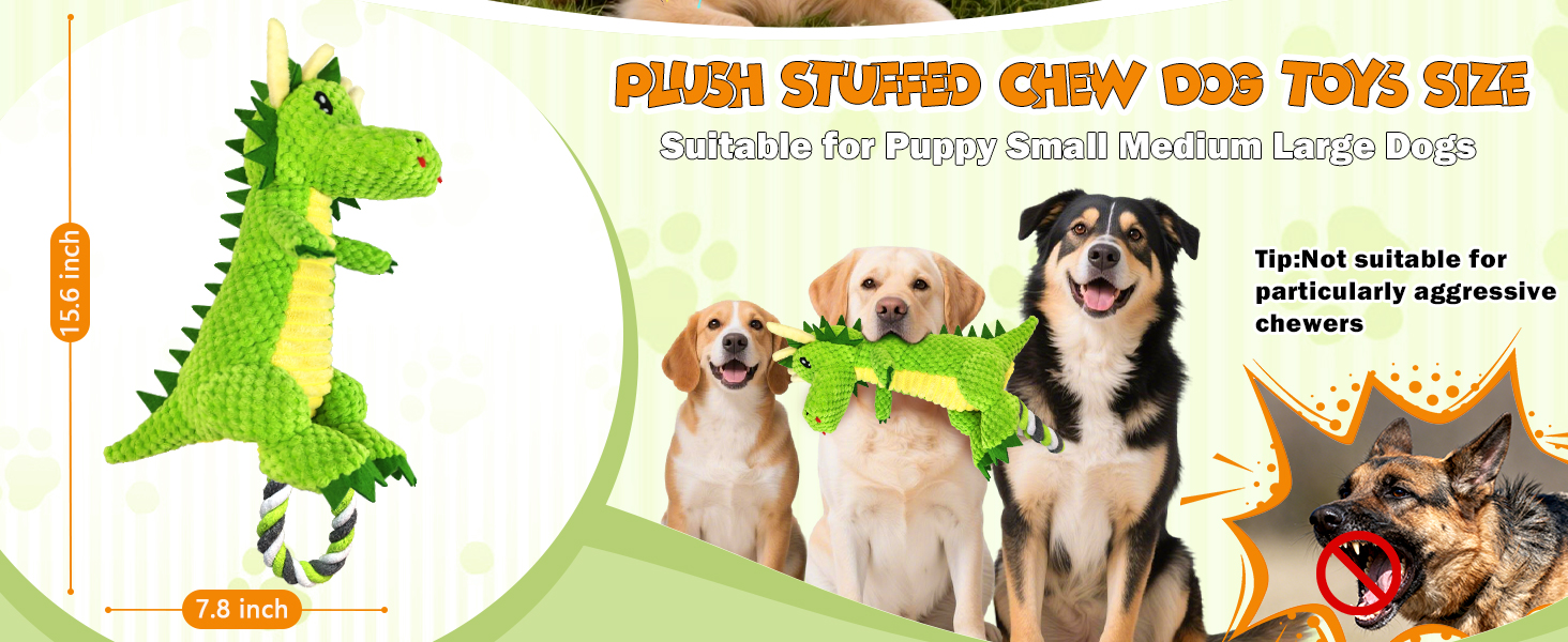 - 【Warm Tips about Large Dog Toys】Our puppy toys machine washable and easy to clean. Dog squeaky toys like any other dog toy, it is not indestructible,we recommend playing under supervision. If you have any questions about the quality of dog toys plush, please contact us, we will offer you satisfactory solution