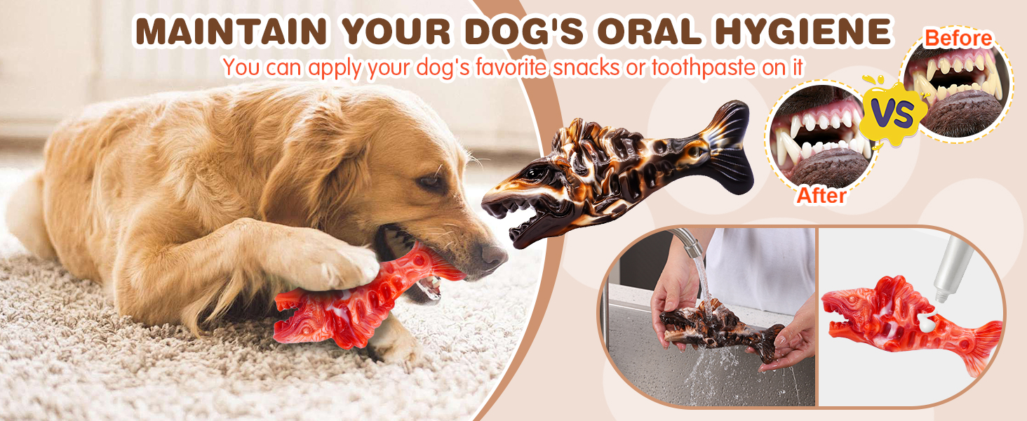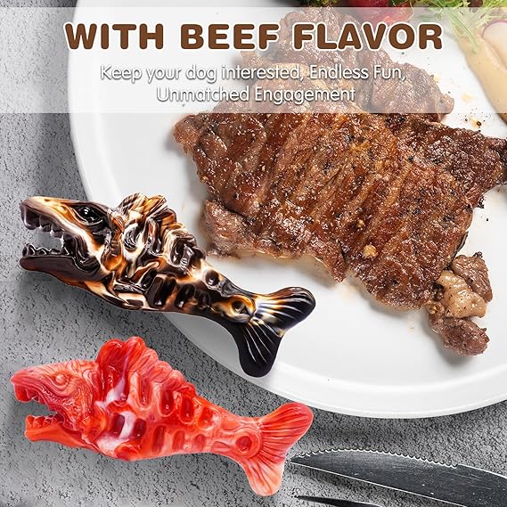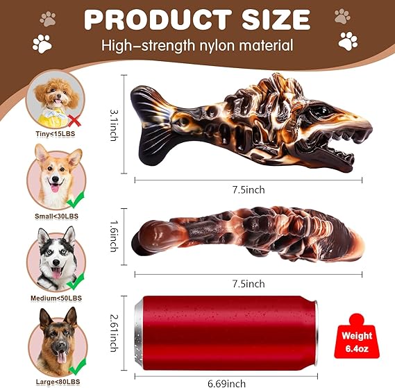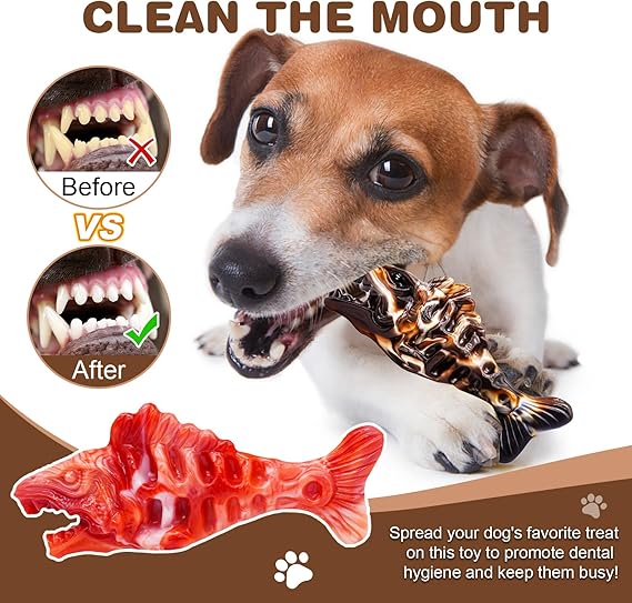 - 【Sturdy & Chew-Resistant】Our dog toys for aggressive chewers are crafted from high-strength nylon with a fish-shaped design that instantly grabs attention. These tough dog toys are ideal chew toys for dogs, satisfying natural gnawing urges while protecting your sofa, pillows, shoes, and more. Perfect as durable dog toys for daily play