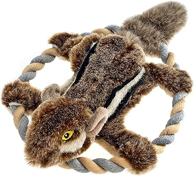 RUFFIN' IT Rhode Island Textile Woodlands Chipmunk Plush Dog Toy with Rope Chew Ring, Mutli, 8.5 inch (Pack of 1), All Breed Sizes
