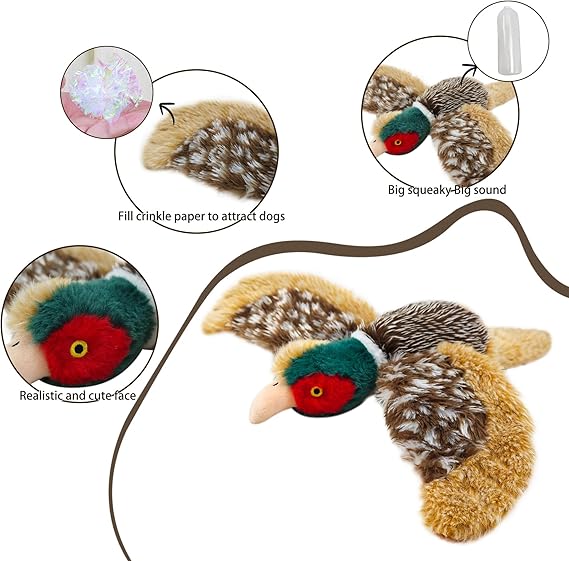 - 【Simulated fabric】The dog toys is made of simulated fabric and filled with PP cotton inside, adding a realistic feeling of the dog chew toys.The squeaky dog toys simulates pheasant dog toy. Whenever a dog sees an interactive dog toy, it will be filled with passion and play happily.