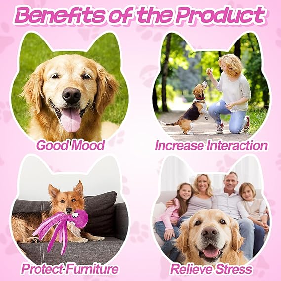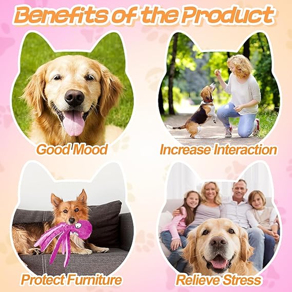 - 3-Pack Octopus Dog Toys: Our octopus toys come in vibrant colors and are designed with an adorable octopus shape that dogs find irresistible. Eight legs design makes it perfect for games of tug-of-war and fetch. The design ensures the toy is easy for your pet to carry, throw, and roll around. Whether you have a puppy, small dog, medium dog, or large dog, these toys will bring joy and excitement to playtime.