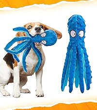 Alphatool Squeaky Dog Toys - Soft Plush Chew Crinkle Puppy Toys to Keep Them Busy, Octopus No Stuffing Interactive Essentials for Teething Small Medium Pets Dogs Gifts - 1pcs