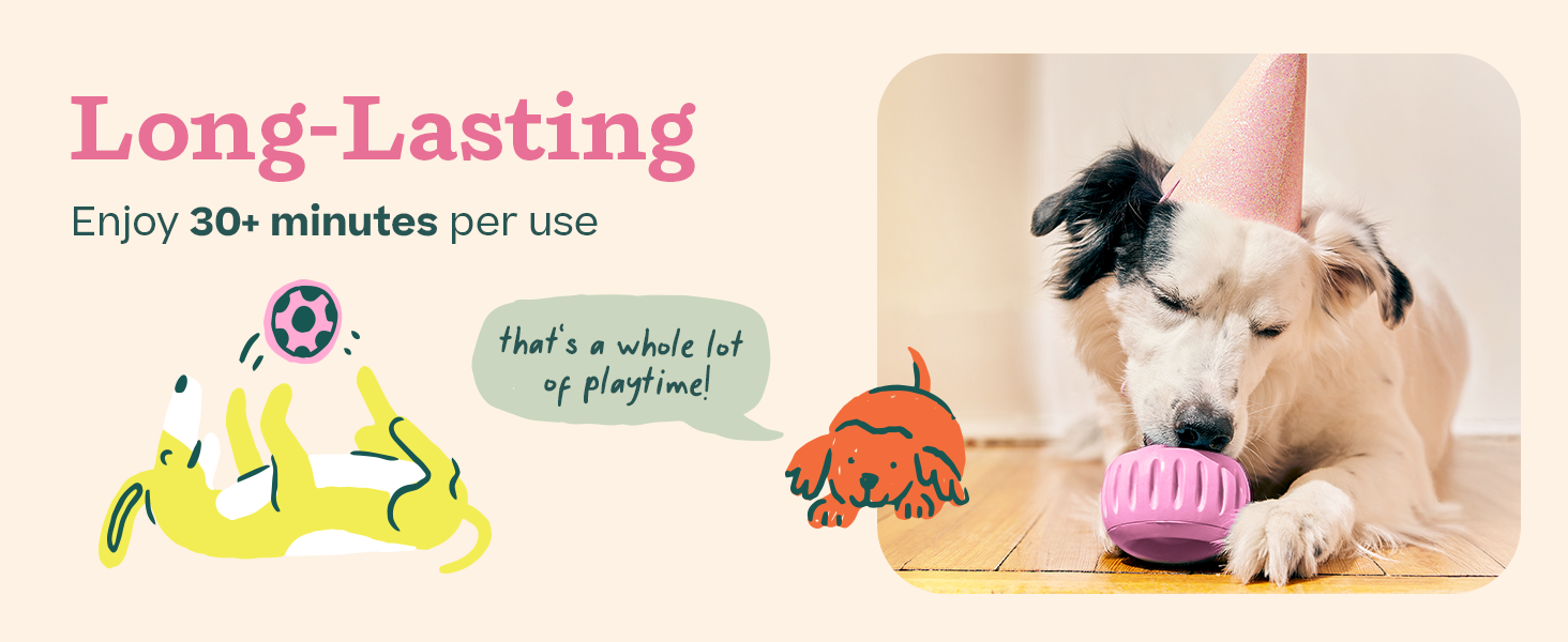 - Easy to Fill and Clean: Filling dog enrichment toys doesn't need to be messy! The Party Pupsicle opens easily for spill-free filling and quick cleanup—just rinse or toss in the dishwasher. For longer playtime, try Pupsicle Dog Birthday Pops, which last 2-3x longer than frozen treats and keep your pup happy with cake-flavored goodness and ingredients like dog-safe sprinkles, peanut butter, and goat milk.