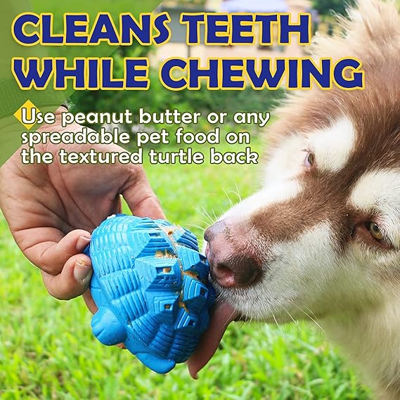 - 【ECO-FRIENDLY & PET HEALTH】Our natural rubber material is 100% eco-friendly and safe for pets, as it is BPA-free. The turtle's unique rubbery texture serves a dual purpose by massaging gums and cleaning teeth, providing oral care while pets play. The raised bumps on the toy help control tartar and plaque, while also offering a soothing texture for teething puppies, promoting their mental health and enhancing playtime pleasure.
